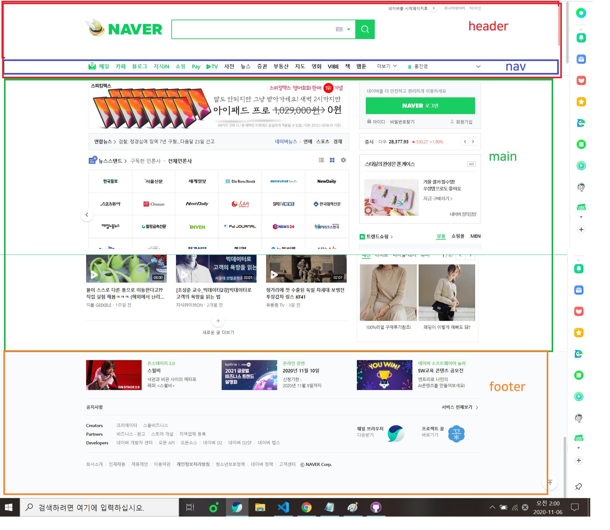< 네이버 메인 페이지 클론 코딩으로 상세한 태그 배우기 >